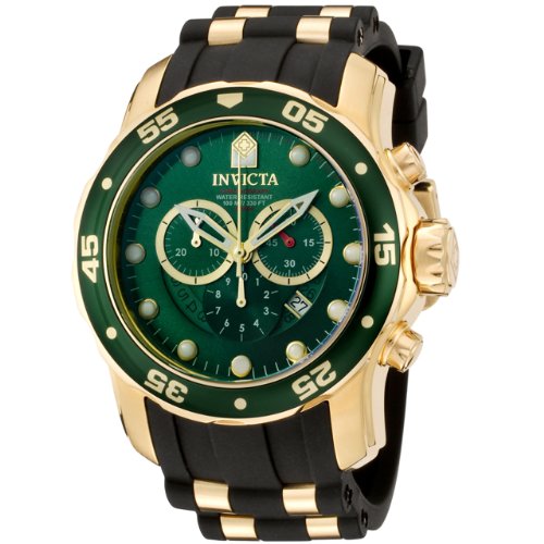The super cool, green and gold Invicta Men's Pro Diver Collection Chronograph Green Dial Black Polyurethane Watch is a high-performance sports watch for the modern man. Start with a vibrant green dial with gold-tone dot indices to mark the hours and stylish subdials with full chronographic functionaInvicta Men's 6984 Pro Diver Collection Chronograph Green Dial Black Polyurethane Watch Do not Miss!! The super cool, green and gold Invicta Men's Pro Diver Collection Chronograph Green Dial Black Polyurethane Watch is a high-performance sports watch for the modern man. Start with a vibrant green dial with gold-tone dot indices to mark the hours and stylish subdials with full chronographic functiona... Invicta Men's 6984 Pro Diver Collection Chronograph Green Dial Black Polyurethane Watch