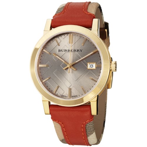 Brushed and polished yellow gold plated stainless steel case (38 mm in diameter, 8 mm thick), Screw-in case-back, Light brown dial with engraved check pattern, Yellow gold-tone luminescent hands, Yellow gold-tone indices, Date window at the 3 o'clock position, Scratch resistant sapphire crystal, SwiBurberry Men's BU9016 Large Check Leather on Canvas Strap Watch Do not Miss!! Brushed and polished yellow gold plated stainless steel case (38 mm in diameter, 8 mm thick), Screw-in case-back, Light brown dial with engraved check pattern, Yellow gold-tone luminescent hands, Yellow gold-tone indices, Date window at the 3 o'clock position, Scratch resistant sapphire crystal, Swi... Burberry Men's BU9016 Large Check Leather on Canvas Strap Watch
