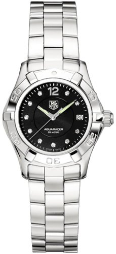 Stainless steel case with a stainless steel bracelet. Unidirectional bezel. Black dial with luminous hands and diamond markers. Arabic marker at the 12 o'clock position. Minute makers around the outer rim. Date displays at the 3 o'clock position. Quartz movement. Scratch resistant sapphire crystal. TAG Heuer Women's WAF141C.BA0824 Aquaracer Diamond Watch Do not Miss!! Stainless steel case with a stainless steel bracelet. Unidirectional bezel. Black dial with luminous hands and diamond markers. Arabic marker at the 12 o'clock position. Minute makers around the outer rim. Date displays at the 3 o'clock position. Quartz movement. Scratch resistant sapphire crystal. ... TAG Heuer Women's WAF141C.BA0824 Aquaracer Diamond Watch