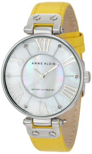 Upgrade to style and sophistication with this elegant Anne Klein watch Boasting a stunning 34mm metal case matched with a secure calfskin band this timepiece makes an ideal accessory for any affair The mother-of-pearl dial sits under a mineral crystal which combines a stylish look and an easy-toAnne Klein Women's 10/9919MPYL Silver-Tone Yellow Leather Strap Watch Do not Miss!! Upgrade to style and sophistication with this elegant Anne Klein watch Boasting a stunning 34mm metal case matched with a secure calfskin band this timepiece makes an ideal accessory for any affair The mother-of-pearl dial sits under a mineral crystal which combines a stylish look and an easy-to... Anne Klein Women's 10/9919MPYL Silver-Tone Yellow Leather Strap Watch