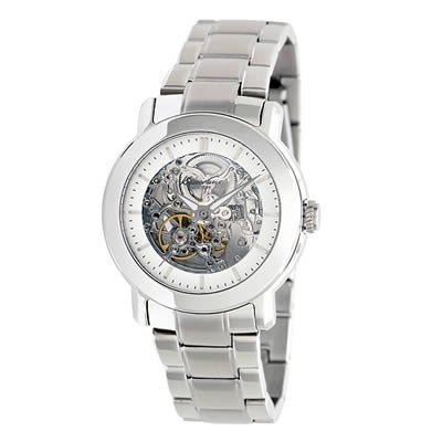 Dress watch, Automatic movement, Polished silver-tone hands with luminous accents, Polished silver-tone markers, Black indices, Skeleton dial with silver-tone outer ring, Polished stainless steel silver-tone bezel, case, crown and screw down see through caseback, Polished/brushed stainless steel silKenneth Cole New York Automatics Skeleton Dial Women's Watch #KC4775 Do not Miss!! Dress watch, Automatic movement, Polished silver-tone hands with luminous accents, Polished silver-tone markers, Black indices, Skeleton dial with silver-tone outer ring, Polished stainless steel silver-tone bezel, case, crown and screw down see through caseback, Polished/brushed stainless steel sil... Kenneth Cole New York Automatics Skeleton Dial Women's Watch #KC4775